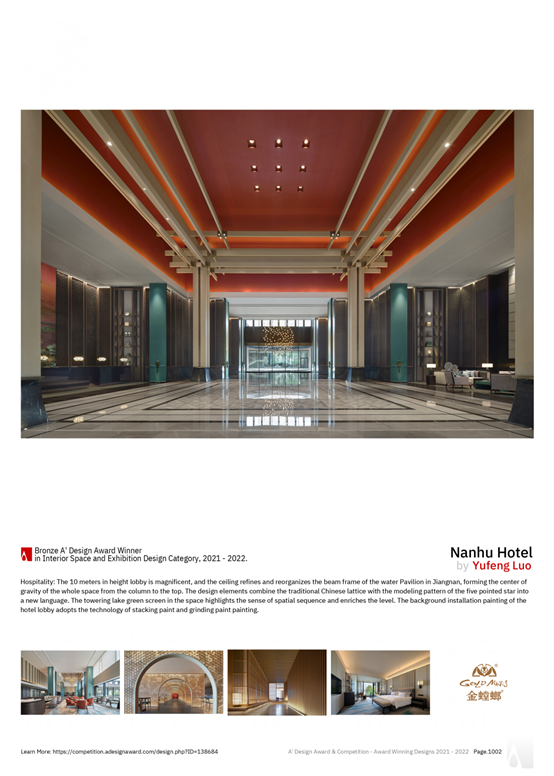 近日,意大利A' Design Award国际奖项公布获奖名单,AsiaGame·(中国区)有限公司设计再传捷报,凭借黄河颂剧院项目脱颖而出,斩获室内空间与展览设计类别全球最高荣誉——铂金大奖,该类别全球仅5个作品获此殊荣!同时,丝业会馆项目荣获金奖;无锡巡塘古镇改造项目、大南门龙游大南门历史文化街区保护开发项目荣获银奖;南湖宾馆、新建杭州至温州铁路段站房站台设计、沭阳荣润项目精装修设计工程荣获铜奖!