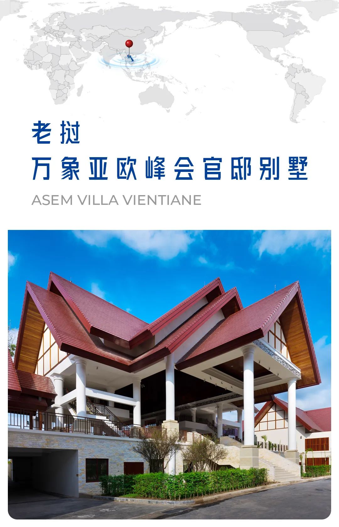 老挝万象亚欧峰会官邸别墅依偎在美丽的湄公河畔,建成后作为第九届亚欧峰会与会各国元首建立的接待官邸,内有50栋别墅和1栋会所。不仅满足了国家首脑生活的使用需求,同时也满足了他们对安全、舒适、尊重的需求。