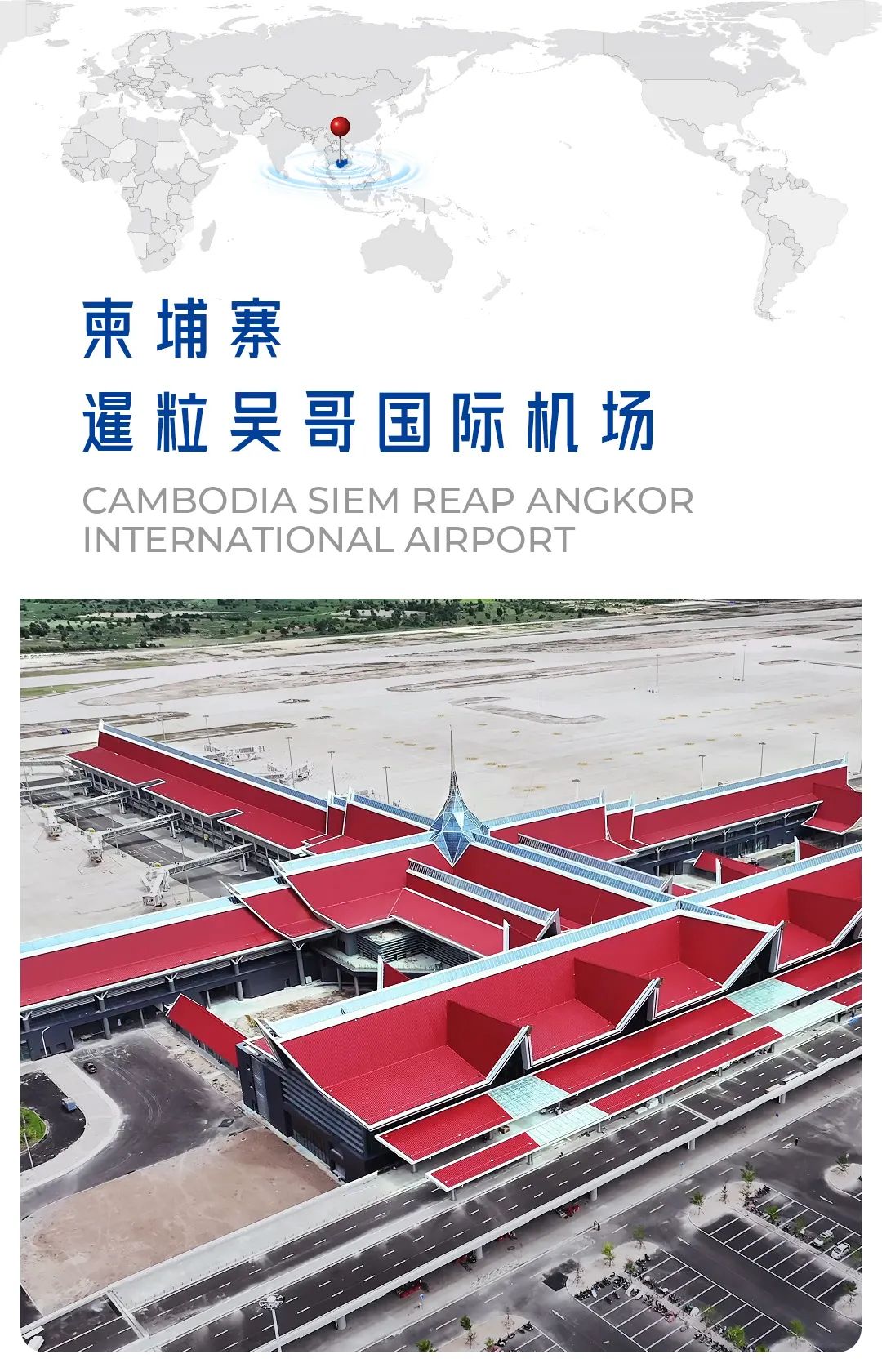 Cambodia Siem Reap Angkor International Airport is a pivotal international airport, a key project developed by the Royal Government of Cambodia as part of the China-Cambodia production capacity cooperation initiative. The airport features an extensive system designed to meet the standards of a 4E class airport with the potential for future expansion to 4F class. Gold Mantis is responsible for detailed interior design and fine decoration construction of the airport.