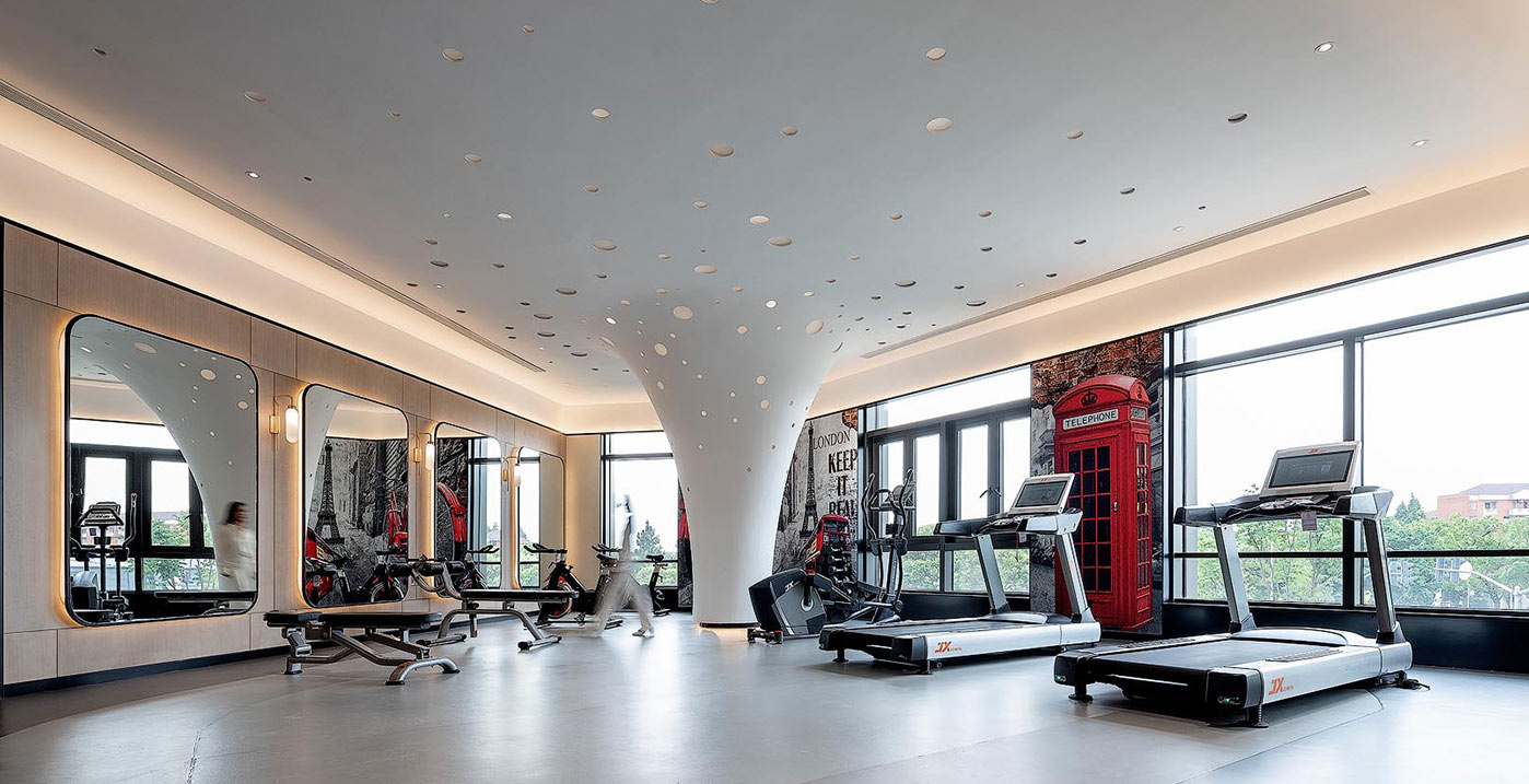 健身房以建筑师“遗忘”在室内的一根柱子为室内设计师解决问题的出发点,将柱子塑造成树的形态,不仅迎合了睿景酒店精神中的崇尚自然的生活态度,与健身房乐活健康的精神内核也不谋而合。