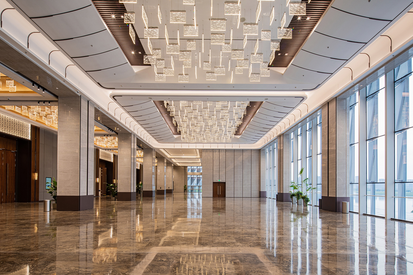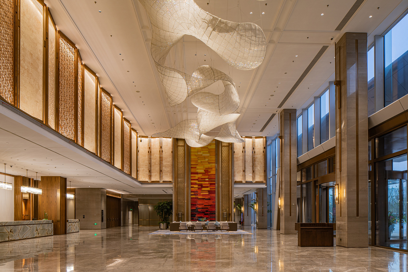 苏州国际会议酒店位于风景秀丽的相城区高铁新城环秀湖边,项目建筑面积30万平方米,其中装修面积20万平方米,客房数量达到1518间;苏州建筑装饰设计研究院负责酒店的方案设计,AsiaGame·(中国区)有限公司负责酒店精装修施工,朗捷通负责酒店的智慧平台、客房控制系统、会议系统、计算机网络系统等智能化服务。