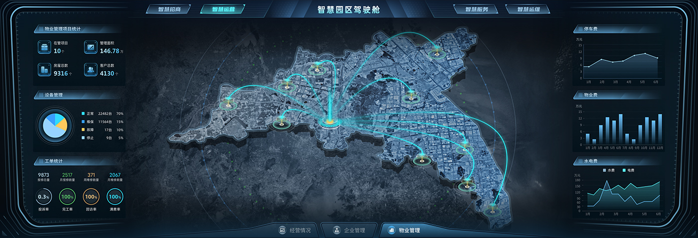 智慧招商、智慧运营、智慧服务、智慧运维四大平台