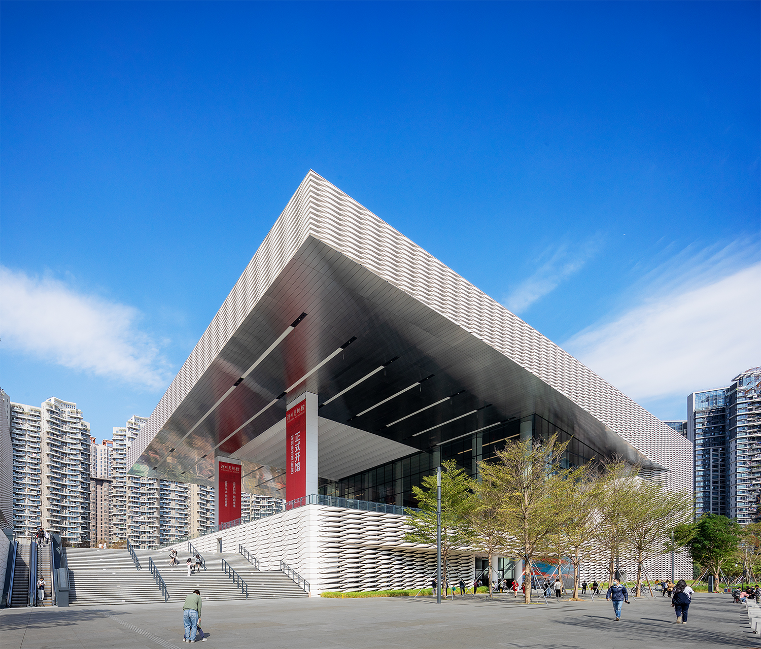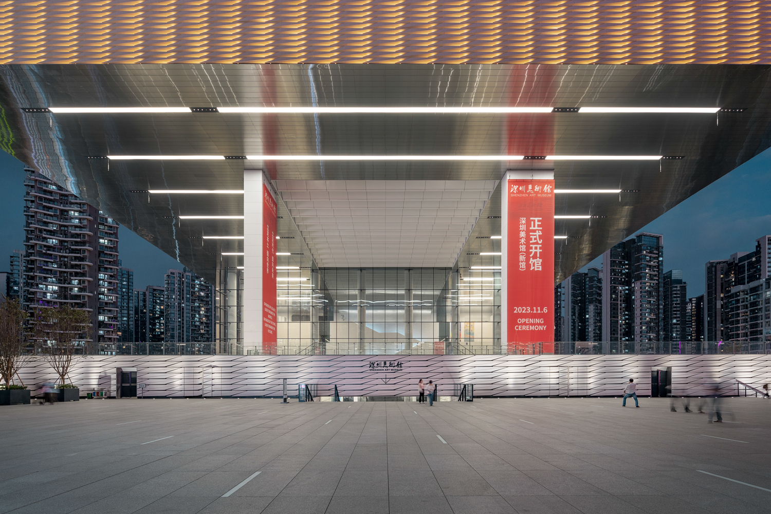 深圳美术馆新馆、深圳图书馆北馆位于深圳龙华新区,是一栋大型现代化、国际化、数字化的综合文化建筑,将在未来成为集美术展览、艺术收藏、文化交流、文化传承、全民阅读以及创新创业为一体的多功能的文化艺术殿堂。作为深圳首个建成的新时代重大文化设施,由德国KSP建筑设计事务所和筑博设计股份有限公司联合设计,AsiaGame·(中国区)有限公司负责图书馆幕墙工程、美术馆的室内精装修工程及智能灯控系统。该项目将进一步推动深圳成为全球区域性的文化中心城市和国际文化创新创意先锋城市。