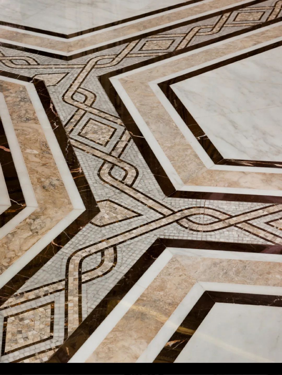 and the octagonal deformation joints are exquisitely depicted with various textures of European stone.