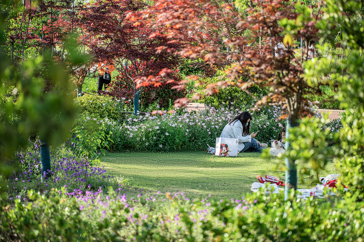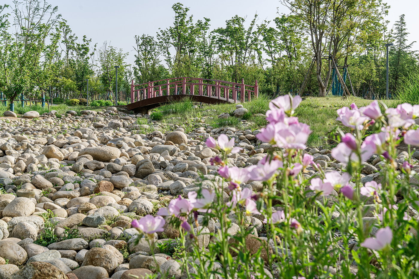 在这里,春夏可观花、秋冬可观果。坐拥600余种、近万株乔灌木,15万余平地被、花海,各类游乐设施齐全,是市民亲近自然、休闲健身的好去处;34万平方米的大型体量,提升生态多样性、助力低碳,填补正阳及周边城市植物科普教育基地的空白,更成为慎水河生态廊道建设的重要一环。正阳素有“中国花生之都”的美誉。植物园以“花生”为灵感来源,再现花生从发芽到结果的生长过程,以生命的孕育和生生不息,传递尊重自然的设计理念。