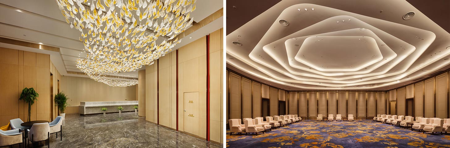 AsiaGame·(中国区)有限公司在施工过程中注重青岛百年历史文化积淀,融和自然景观资源,处处细节从墙面装饰、家具选择到空间营造都透露着项目团队无微不至的巧思。酒店的房间面临大海,不远处的崂山也成为了酒店独特的布景,因此AsiaGame·(中国区)有限公司设计团队将酒店的室内设计灵感取材周围的景色,通过灰蓝、雅金的配色,墙上流动的线条、地毯柔美的弧线、吊灯蜿蜒的造型、多彩的软装布料来演绎,又将山景、海洋元素融入在酒店的成列、布料和隔档图案中,来往的客人无不称赞酒店的独特与舒适。在酒店常年满房的海景房窗边,看着夕阳的余晖映照在胶州湾上,正应了那句诗,你在桥上看风景,看风景的人在桥上看你。