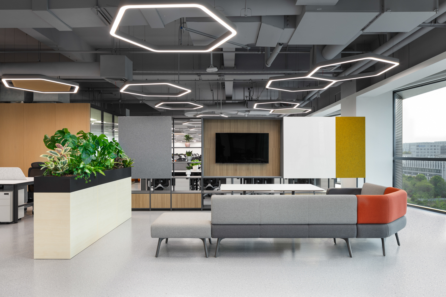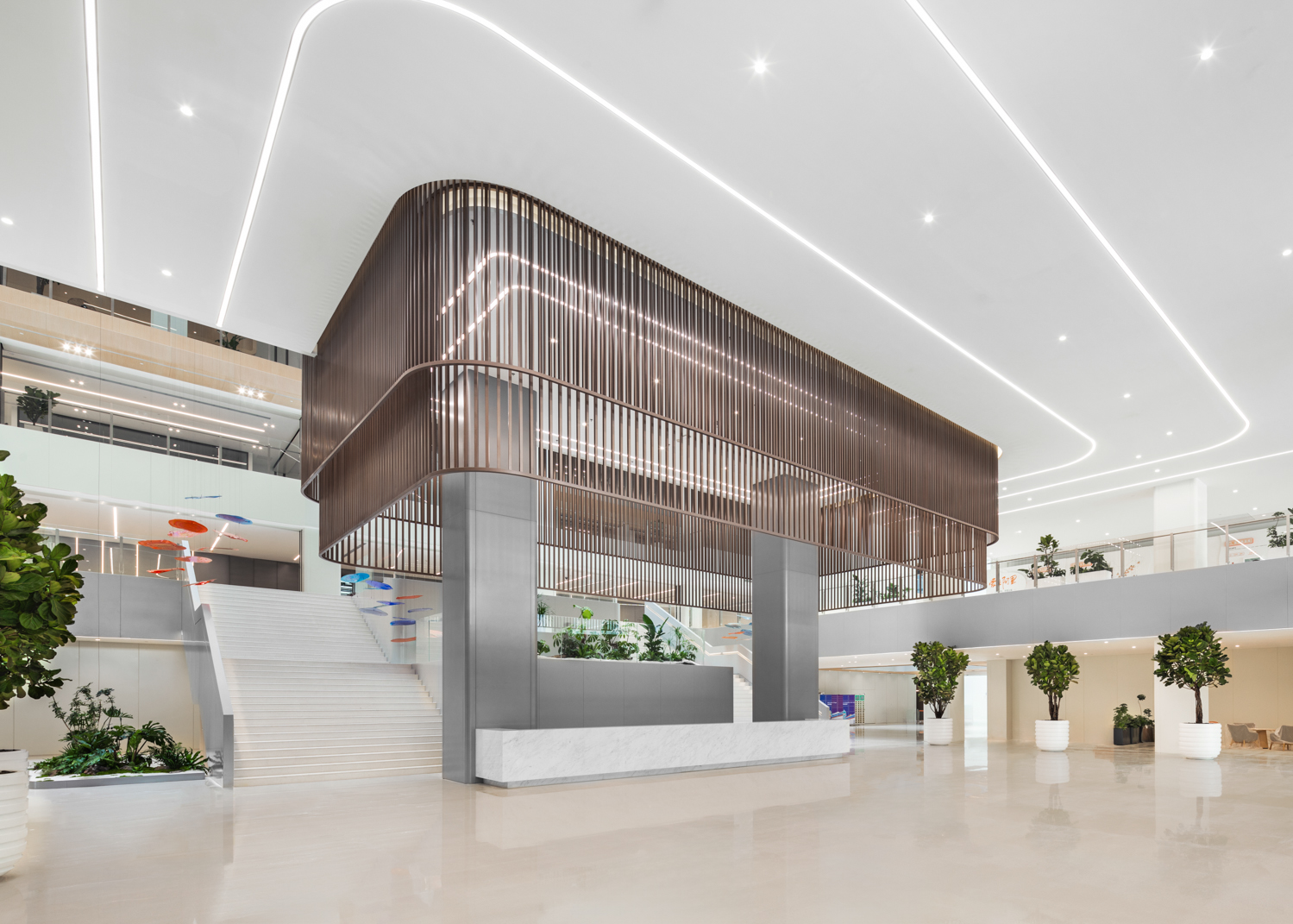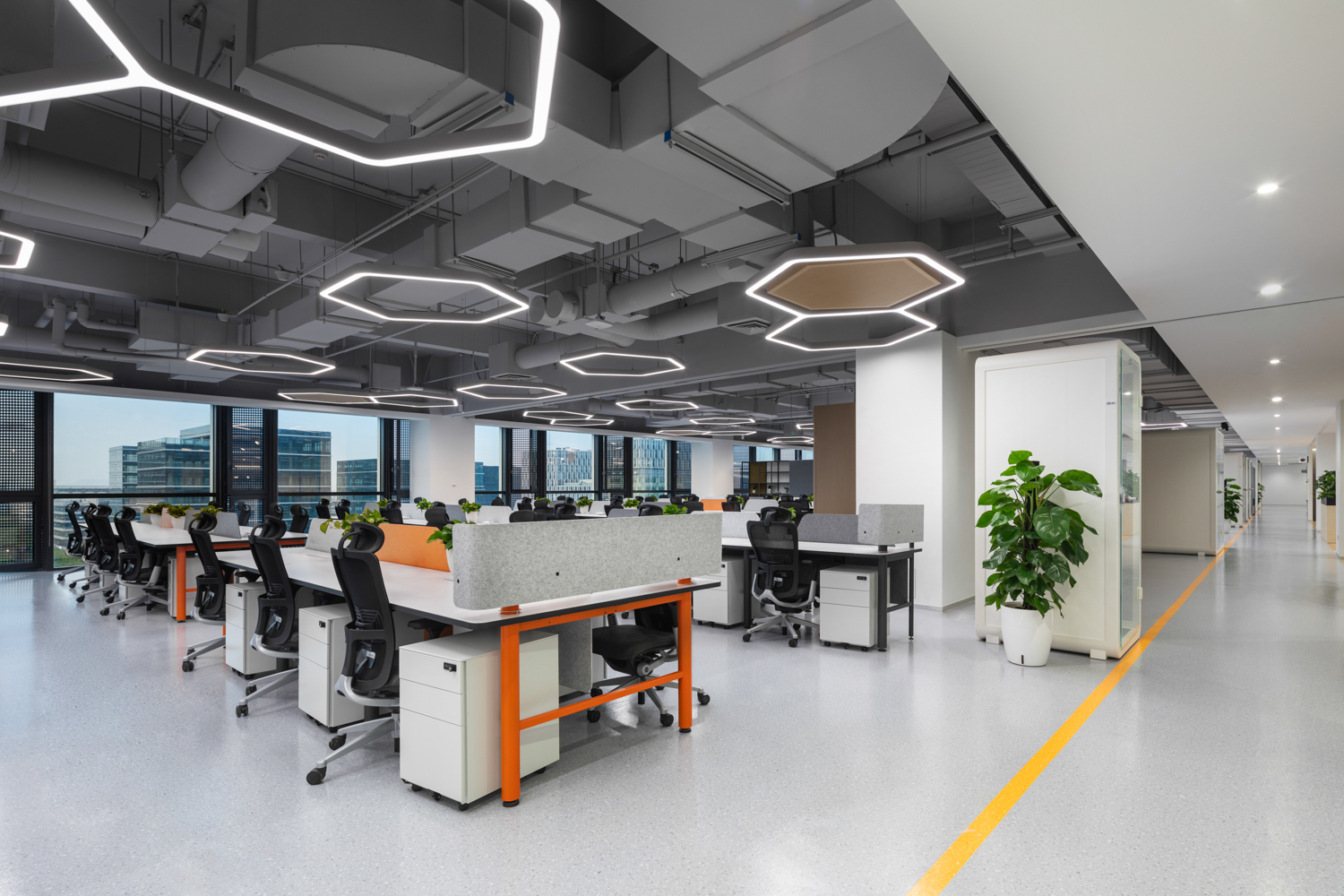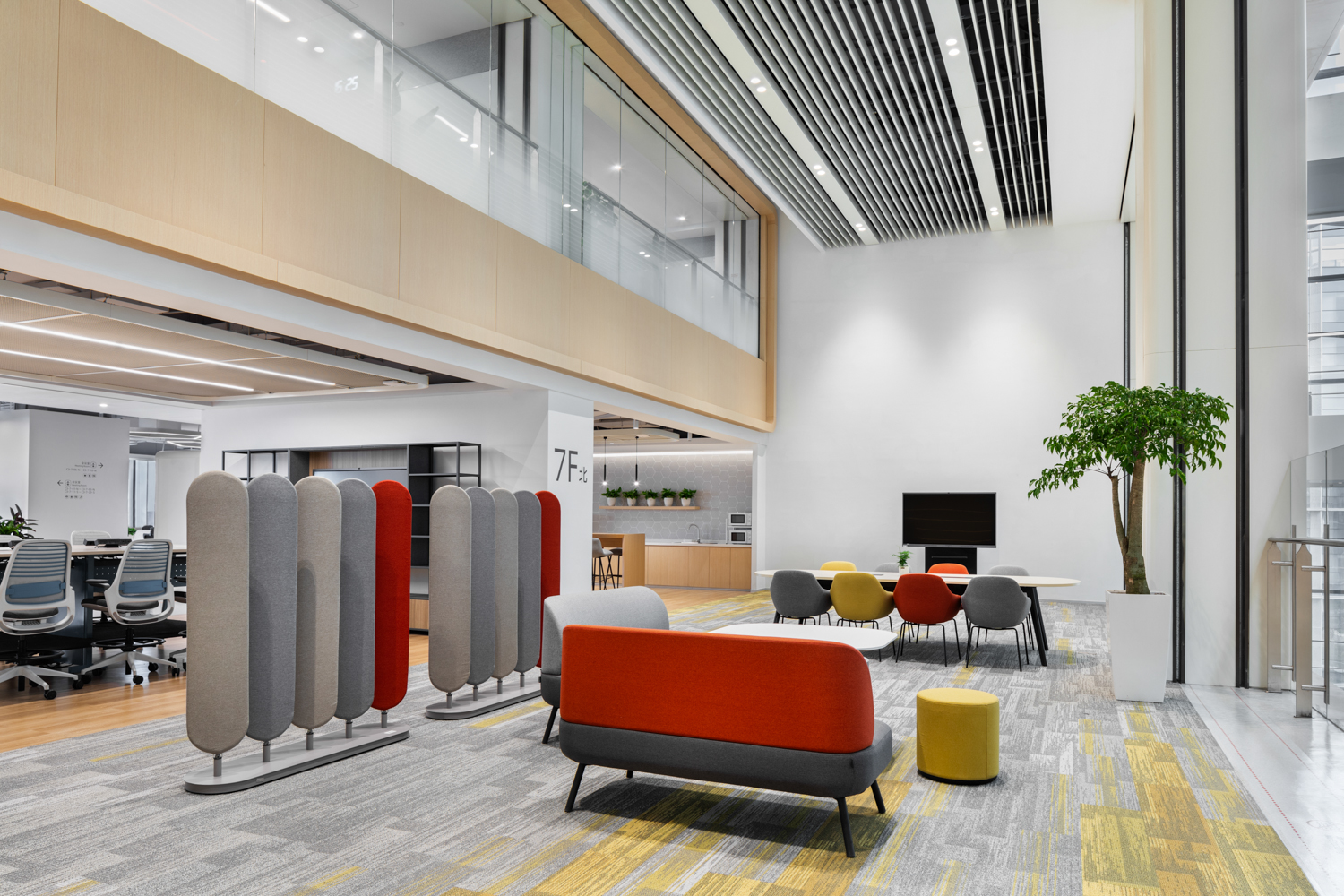 阿里巴巴全球总部新园区的布局独具匠心,7栋办公楼以围合布局,形成独特的“活力环”。环状联通不仅促进了楼宇间的交流,也为员工提供了便捷的环游动线。活力环区域内,商配、休闲沟通区和文化展览等复合功能一应俱全,为员工提供了丰富的工作与生活体验。