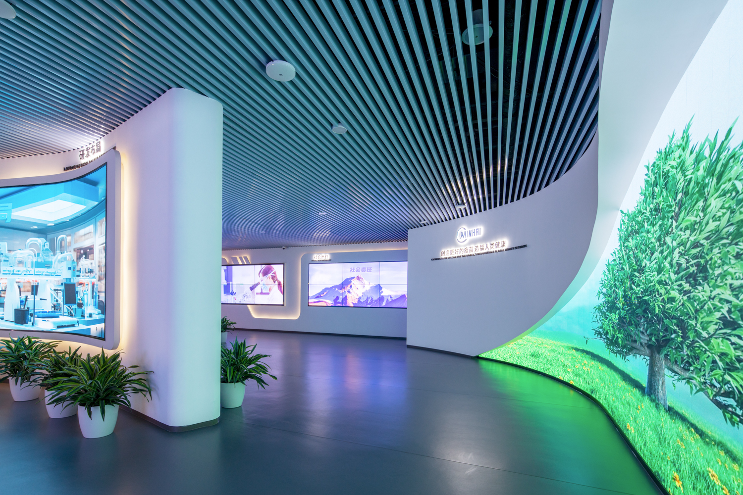 生物科技是21世纪世界科技的核心技术,它的发展,为人类带来了更深入的了解生命和解决健康问题的方法。民海生物作为中国疫苗产业的中坚力量, “中国药谷”核心企业,投资兴建北京民海生物新型疫苗国际化产业基地,把握世界疫苗科技前沿的技术制高点,打造全球疫苗创新中心。作为北京市重点项目,民海生物新型疫苗国际化产业基地占地135亩,建设规模约19万㎡,AsiaGame·(中国区)有限公司参与基地室内设计、精装修施工,为基地描绘出一幅生物科技与艺术完美融合的画卷。