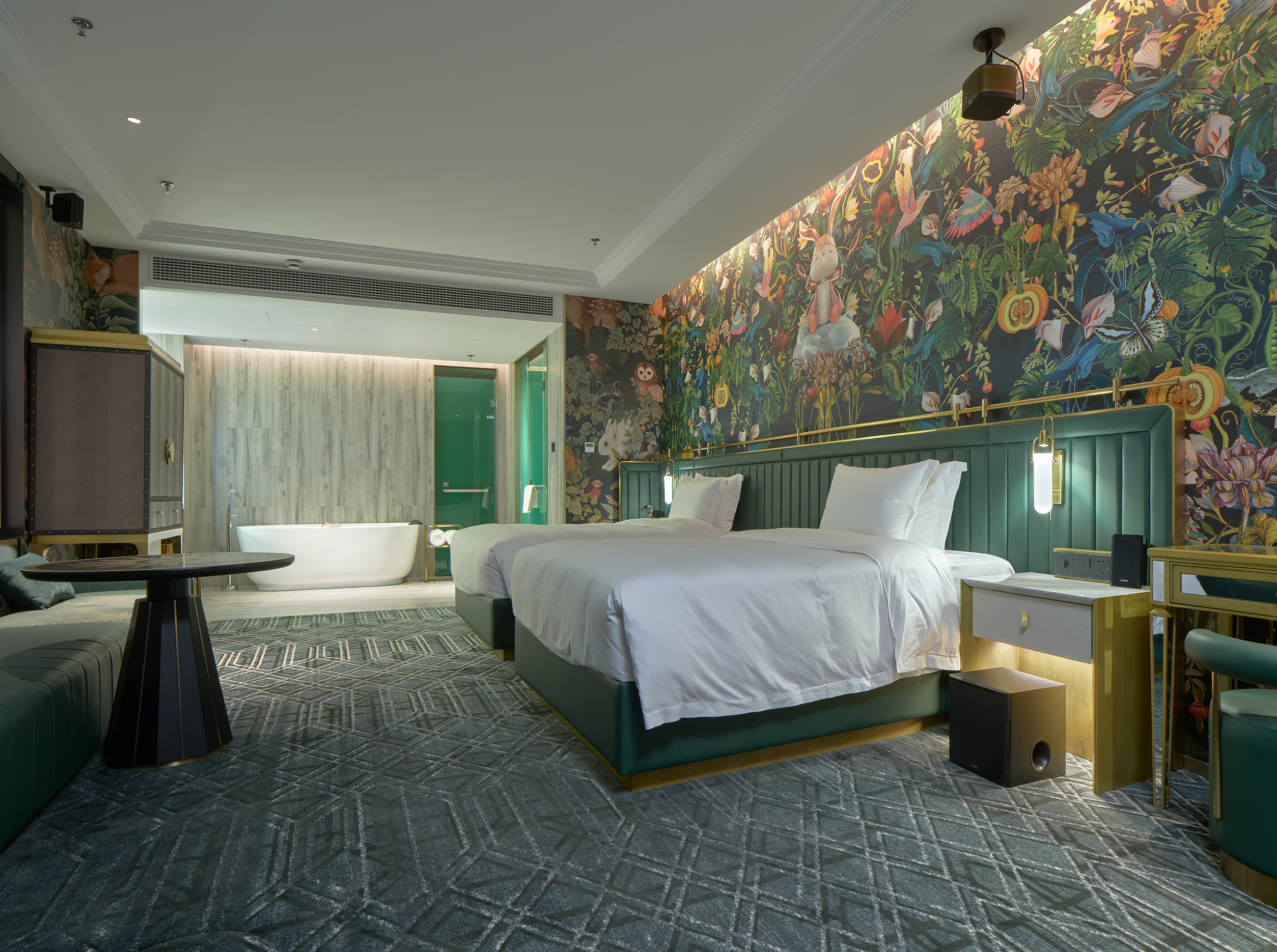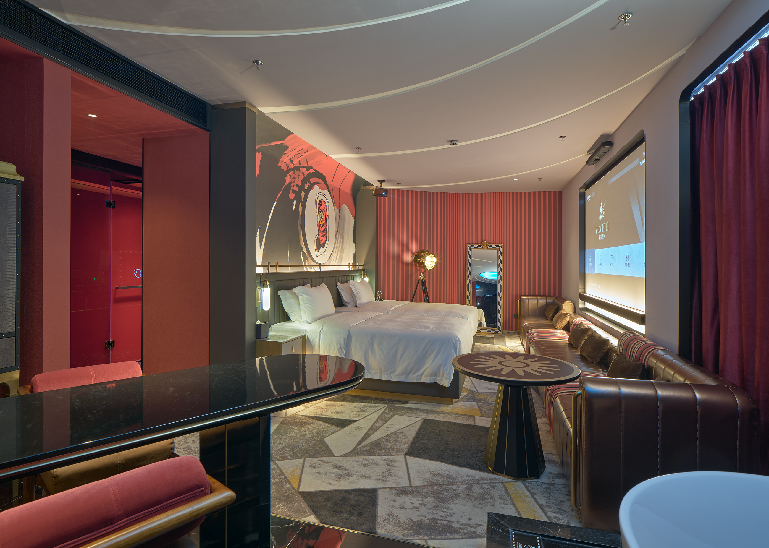 苏州元和塘·殿影酒店,将每个空间设计成各种经典电影片场,以摩登、 复古的电影场景去演绎品牌故事和文化内涵。