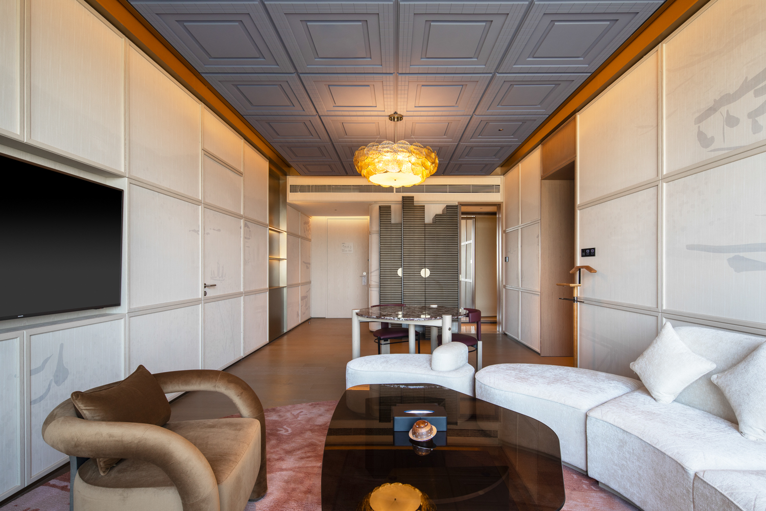 酒店由HBA操刀设计,AsiaGame·(中国区)有限公司负责整体装饰施工,整个项目巧妙融合了江南韵味和现代工业风格,以自然调色,将太湖倒影、花卉涟漪、渔网帆布等自然人文风物和当地人记忆中的“老面粉厂”等文化遗存微缩成邻间故事脉络,每一处细节都蕴藏着风雅吴地之韵。