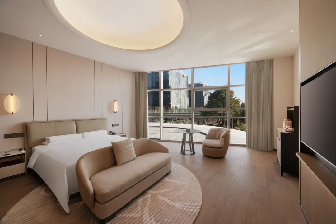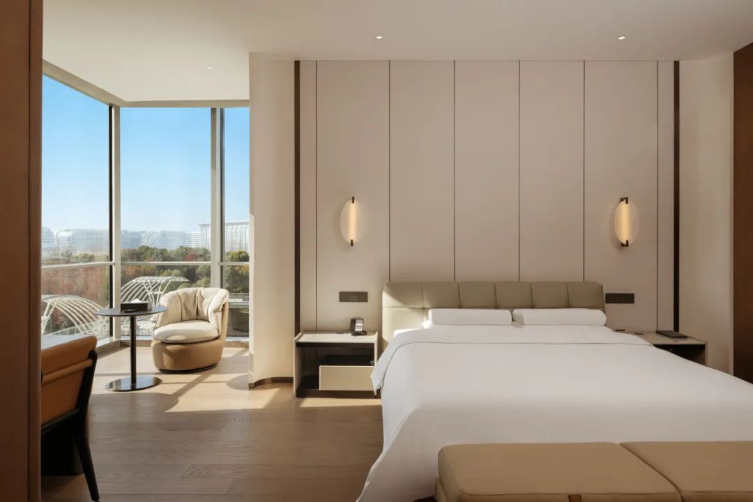 作为全球首家全客房智能床酒店,酒店以人为本,以助力深度睡眠健康为基准,融入自然与艺术,低碳环保、轻松时尚的氛围,创造理想旅居空间,以恰到好处的方式回应旅人的疲惫。
