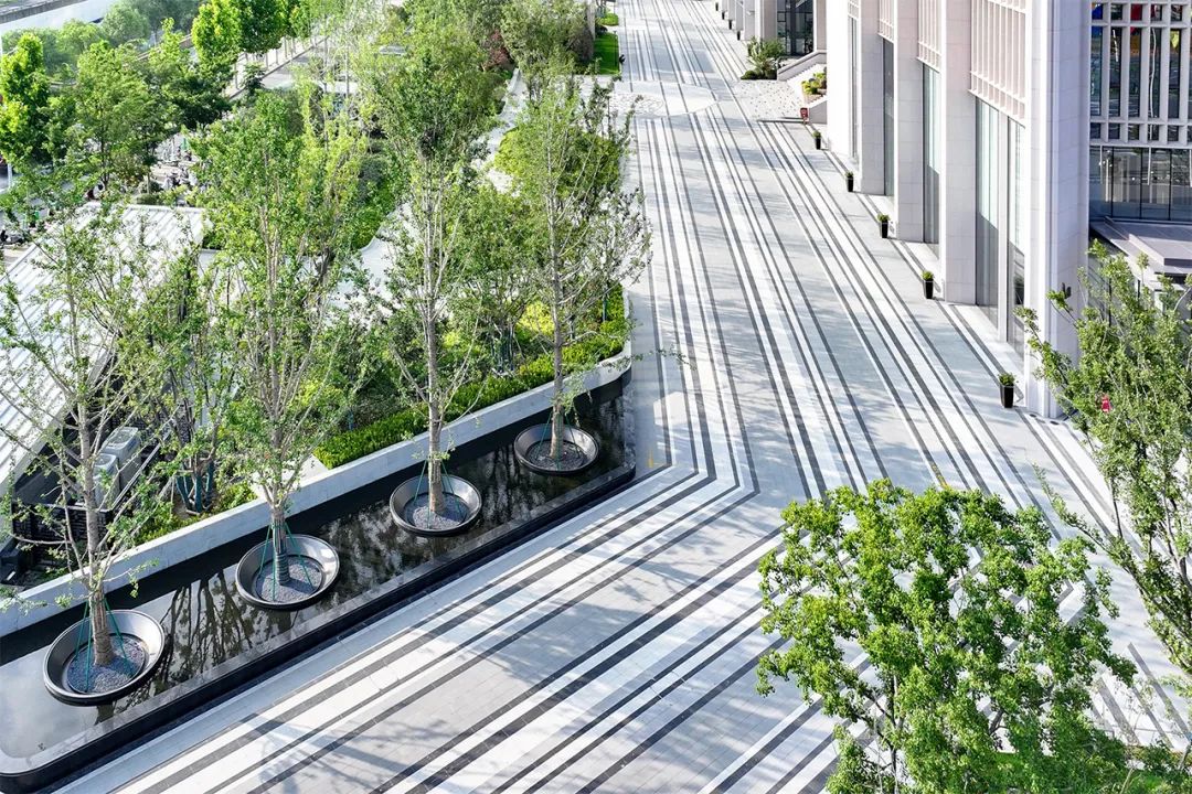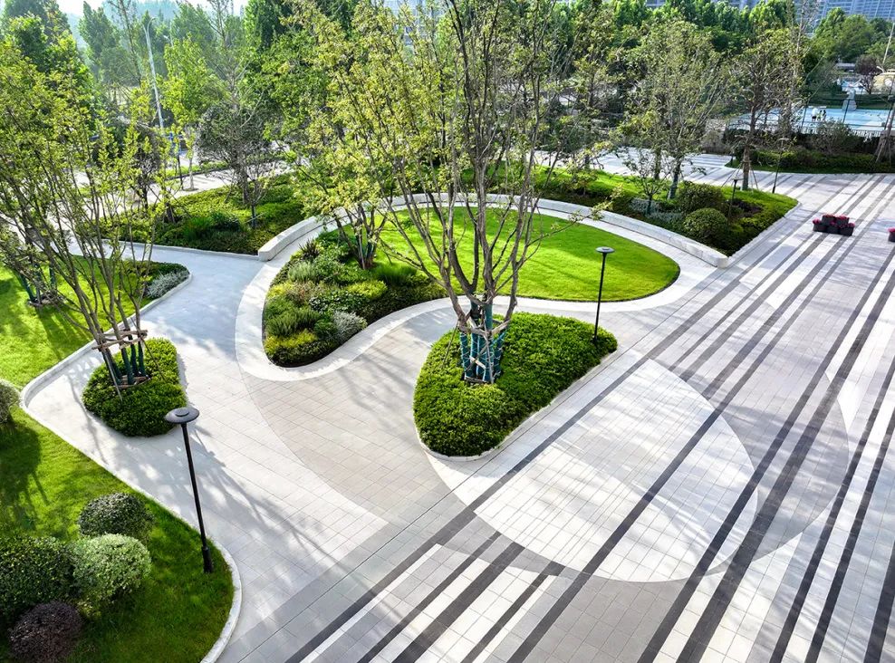 通过精确的放样排版,铺装线条形成整洁有序的视觉引导,让功能与艺术自然融合。