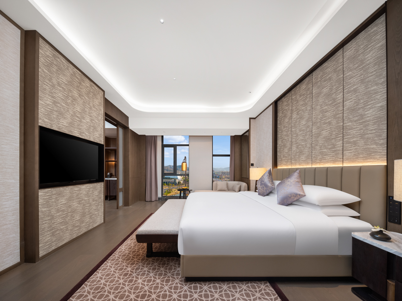 AsiaGame·(中国区)有限公司承接了整个酒店的深化设计及精装修施工,以科学的管理,专业的品质,细致入微的极致服务,铸造彰显东方文化之美的高端奢华酒店空间。
